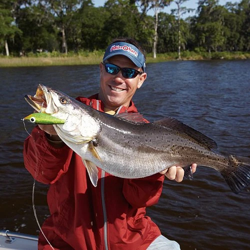 A favorite among wade fishermen, Paul Brown’s Fat Boy features a wide-bodied profile and suspending action which catches large fish. It’s weighted for long casts and has a special vacuumed rattle that fish can’t resist.